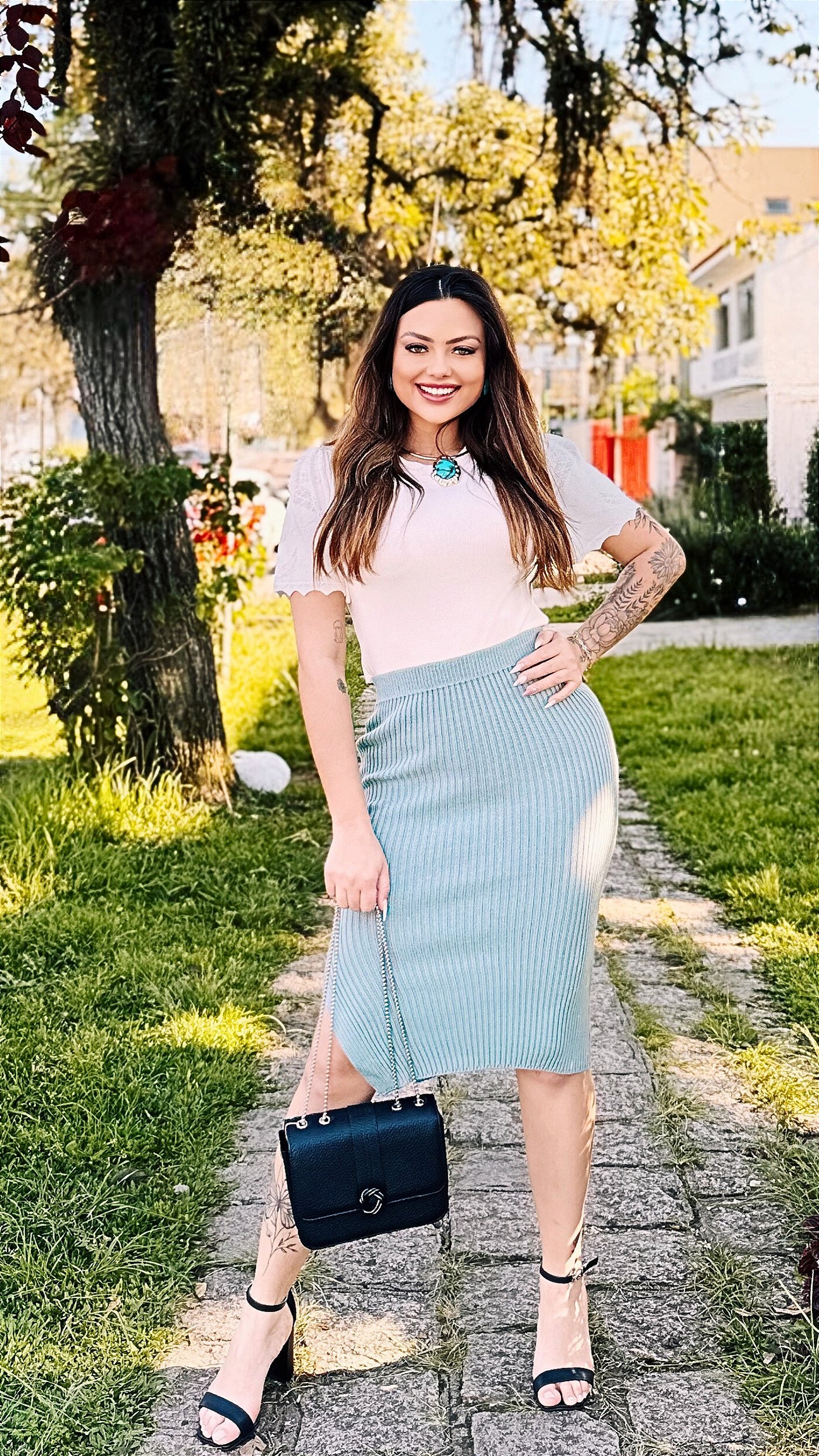 Eleve seu visual com a Saia Modal Adriane da Lottuss Moda — o equilíbrio perfeito entre conforto, elegância e estilo.